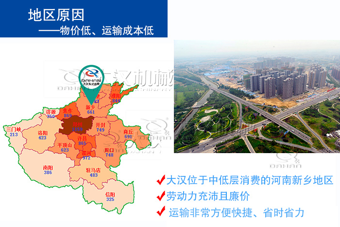 大漢公司位于新鄉(xiāng)大漢,設(shè)備的運(yùn)輸非常方便快捷、省時(shí)省力,免除了40%以上的成本費(fèi)用,且新鄉(xiāng)人力、物力資源豐富,生產(chǎn)設(shè)備花費(fèi)的制造成本也相對(duì)減少10%左右,因此設(shè)備的總成本會(huì)降低25%,故而小型滾筒篩價(jià)格會(huì)比較低些。