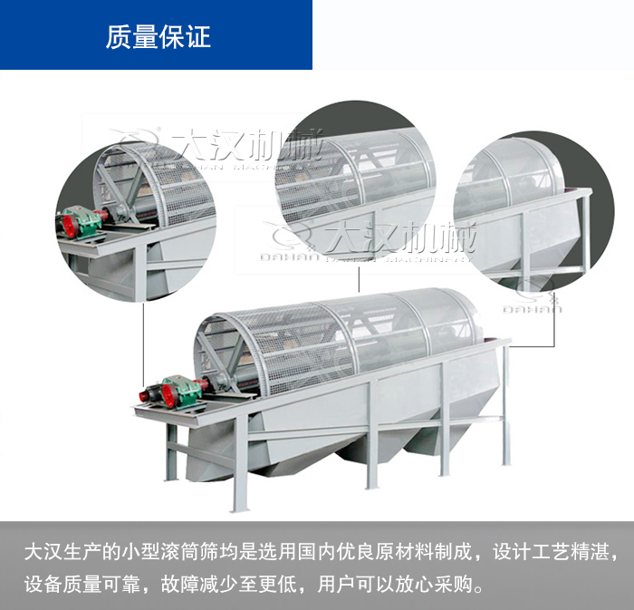 小型滾筒篩多少錢(qián)?大漢公司為您報(bào)價(jià),大漢滾筒篩新價(jià)格:8000元—54000元。購(gòu)買(mǎi)小型滾筒篩哪里實(shí)惠,還是建議您來(lái)新鄉(xiāng)大漢,主要原因如下: