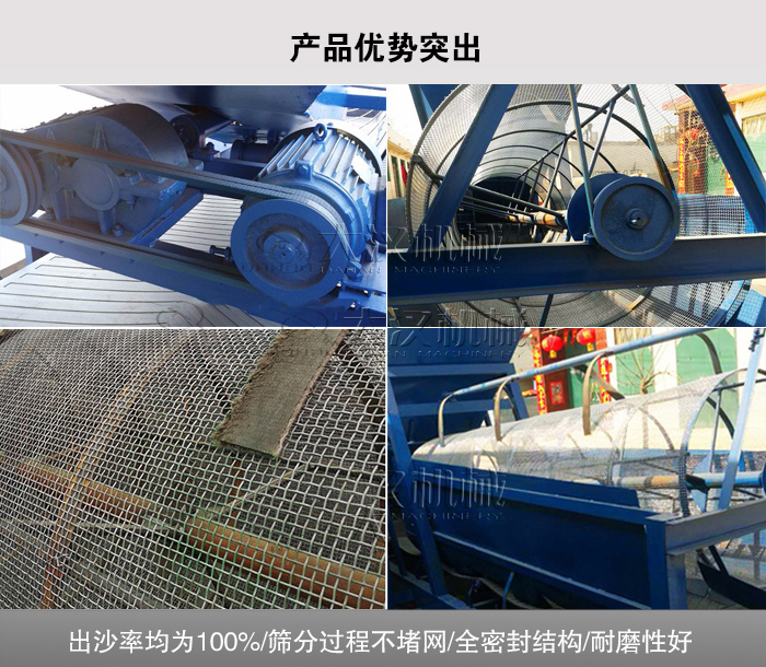 1)無論干沙、濕沙,出沙率均為100%,產量大且沙石分離,成品粒度均勻,篩分產量范圍在50-800噸/時;