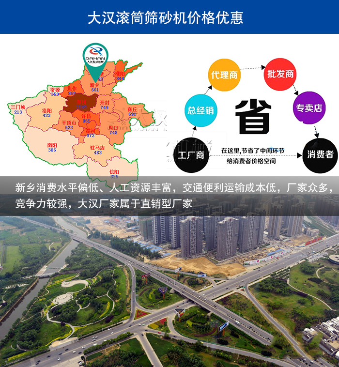 3、新鄉(xiāng)地區(qū)消費(fèi)水平偏低,針對(duì)購(gòu)買用戶群體多為周邊城市,從消費(fèi)者出發(fā),我們廠家制定價(jià)格一般偏低,另外大漢廠家屬于直銷型廠家,無中間商,滾筒篩沙機(jī)價(jià)格更便宜;