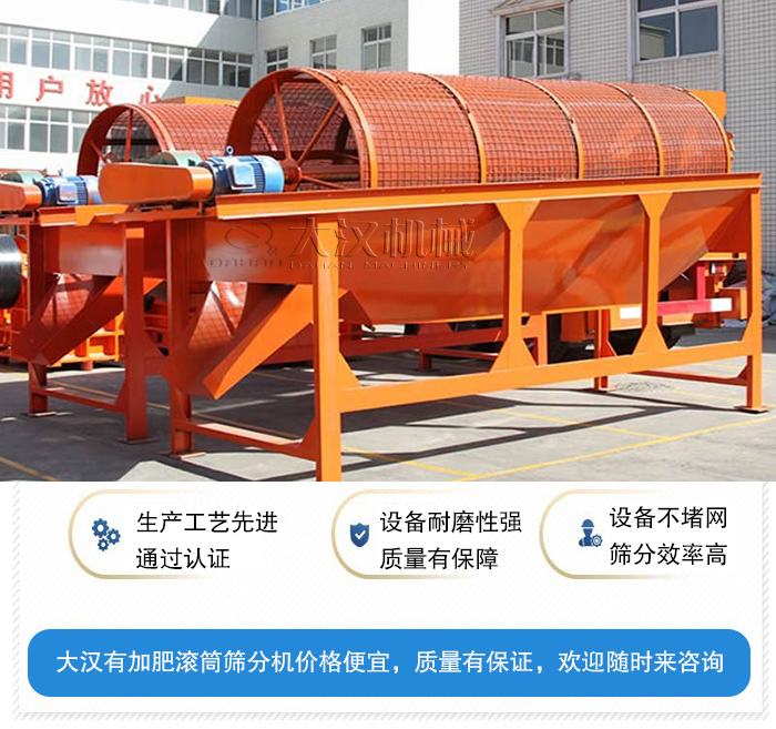 大漢有加肥滾筒篩分機(jī)價(jià)格便宜,質(zhì)量有保證,歡迎隨時(shí)來(lái)咨詢。