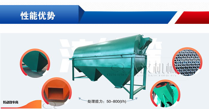 滾筒篩是若干個圓環狀網組成,其總篩分面積遠遠大于其它篩型的篩分面積,再加上篩分效率高,設備運行時間段短,故而使用壽命較長、易損件少、維修量小。