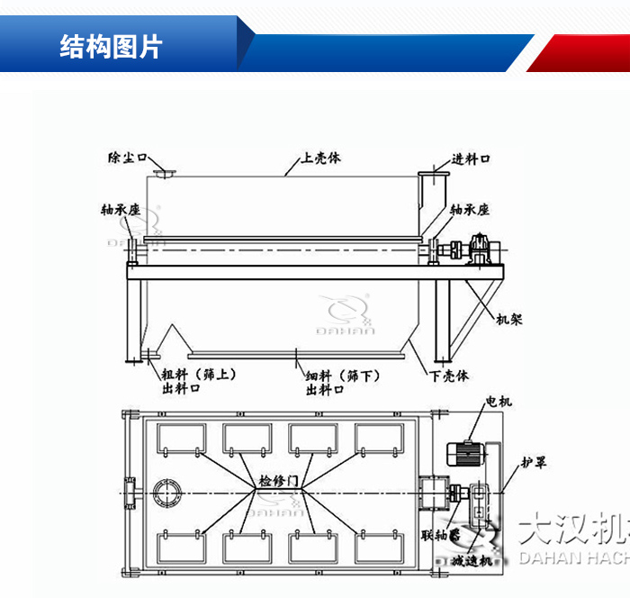 2、梳型清篩機構,在篩分過程中,不會出現堵網現象,有效提高了設備的篩分效率;