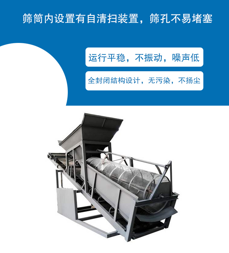 2、篩筒內設置有自清掃裝置,篩孔不易堵塞。