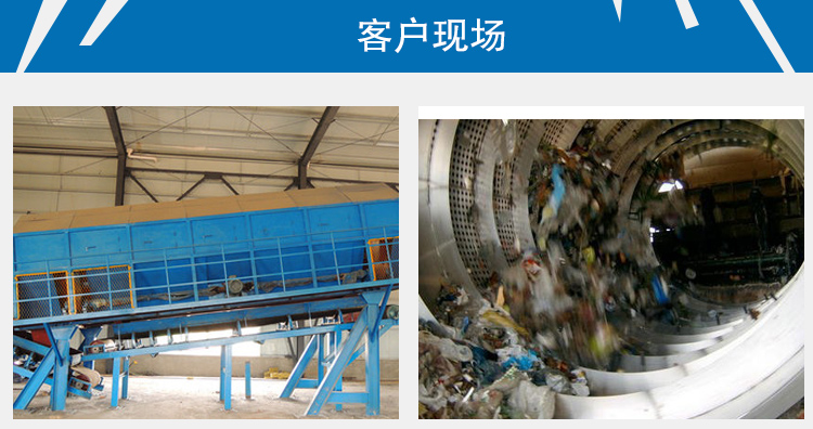 生活垃圾滾筒篩主要用于城鄉生活垃圾的破袋和篩選,與其他類型的滾筒篩不同的是,由于生活垃圾中所含的雜質多,在篩分過程中會由于物料的形狀不一會造成篩筒內堵塞,針對生活垃圾篩分的物料一般采用的是無中心軸設計,能夠防止物料纏繞,減少篩網堵塞,提高篩分精度和產量。