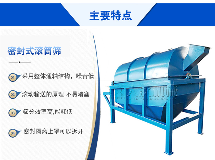 大漢公司生產的封閉式滾筒篩選用的材料要求嚴格,提升設備本身的耐磨性、抗壓性、使用性,質量過硬,使用壽命長。
